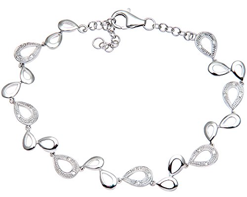 Best Seller! Naava Women's 9 ct White Gold Pave Set Diamond Pear Shaped Link Bracelet Review